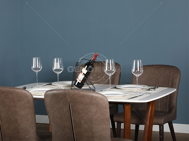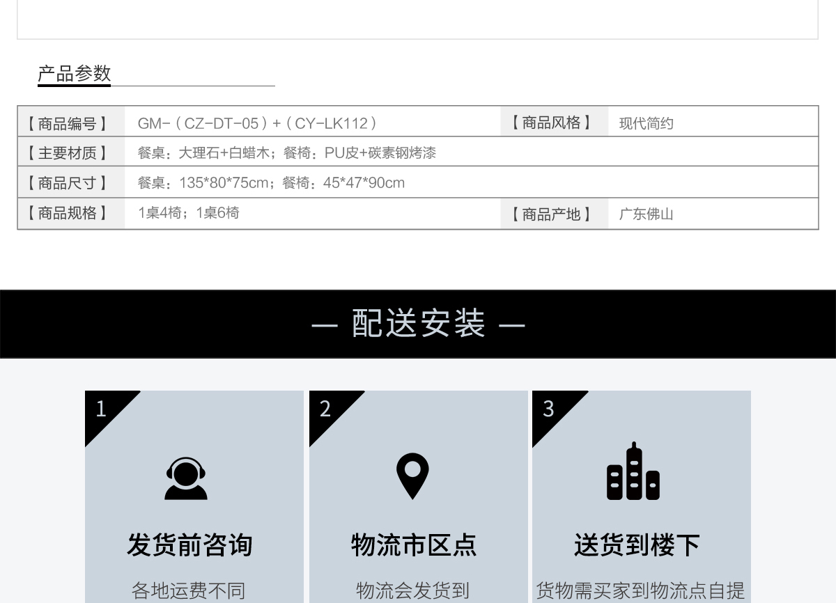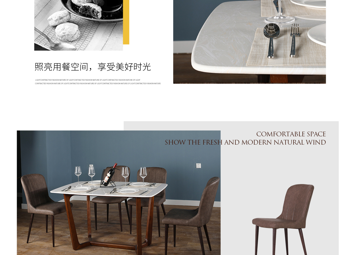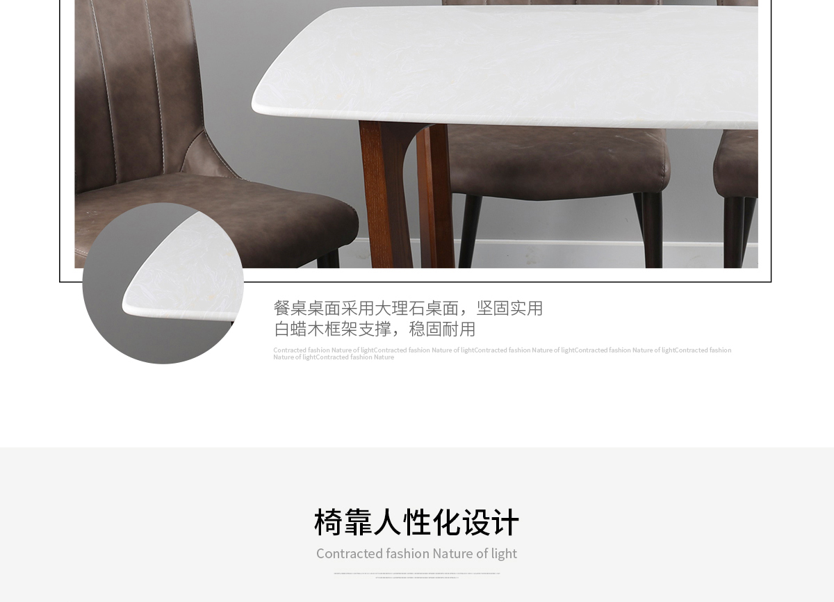 臺(tái)面材質(zhì):餐桌(天然大理石)+餐椅(PU)