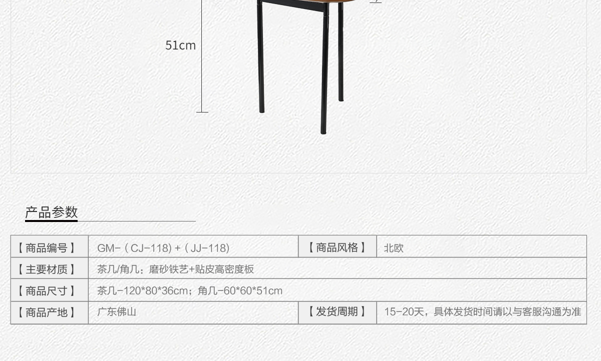 名稱(chēng):木質(zhì)北歐胡桃色茶幾118套幾