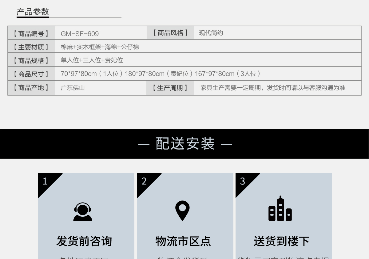 名稱:簡約現(xiàn)代三人位客廳家具整裝套裝布藝沙發(fā)SF609
