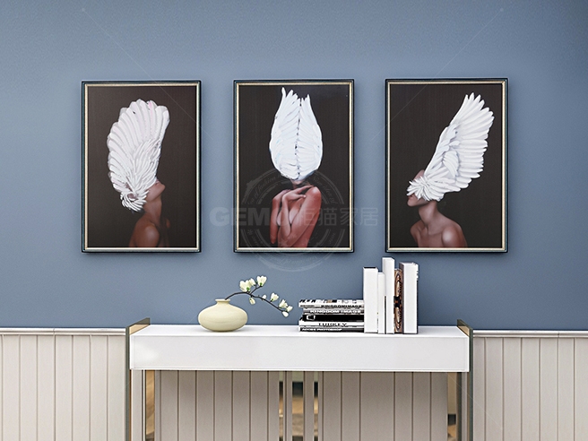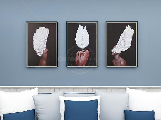 現(xiàn)代簡約客廳沙發(fā)背景墻創(chuàng)意組合掛畫-羽毛女孩