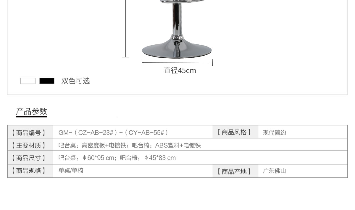 尺寸:吧臺(tái):60*60*95/吧椅:45*45*83