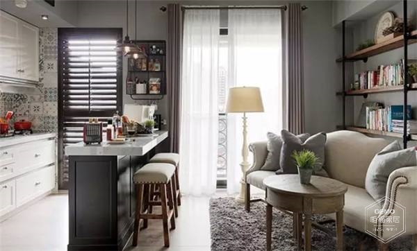 其次,不管是對(duì)于一個(gè)年輕的家庭或是單身一族來說,家里的各種功能還是要具備的。 小戶型要盡量不使用硬隔斷(即墻),做一些軟裝來區(qū)分空間就好。比如,利用一面大的書柜來區(qū)分臥室和客廳。