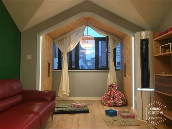 墻面主體為灰色調(diào),天花板刷白色,客廳沙發(fā)墻用綠色搭配紅色皮沙發(fā),臥室床頭刷藍色搭配黑胡桃大床和茶色衣柜門。整屋大多數(shù)家具選用木墨,材質(zhì)也是基本都是黑胡桃和紅橡木倆種,以求色調(diào)統(tǒng)一。地板采用淺色紋理、疤痕款實木復(fù)合,衛(wèi)生間和廚房瓷磚都是白墻黑地,也都有些紋理和變化。