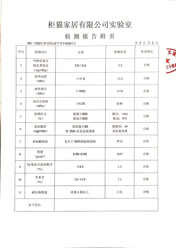 柜貓輕奢定制 2023年5月卡特灰飾面顆粒板柜體板實(shí)驗(yàn)室檢測報(bào)告
