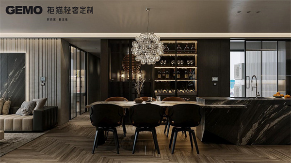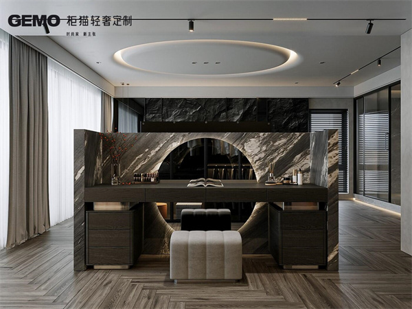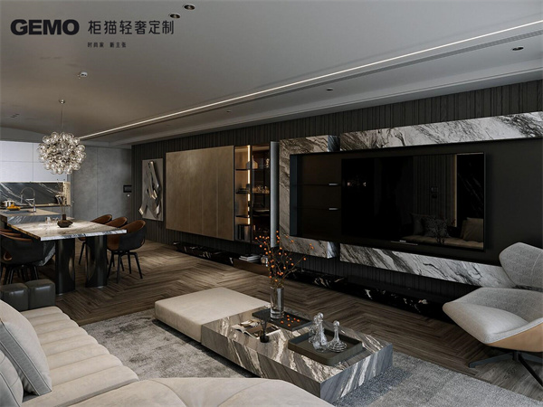 輕奢定制家具常用的材質(zhì)如皮革、金屬、玻璃等,本身就帶有一定的色彩和光澤。在選擇家具顏色時,應考慮材質(zhì)的特性,使得色彩與材質(zhì)相得益彰。例如,光澤感強的金屬材質(zhì)搭配淡雅的色調(diào),可以增添空間的現(xiàn)代感;而溫暖的木質(zhì)色調(diào)則更適合與自然色系的家具相結(jié)合,營造出溫馨舒適的氛圍。