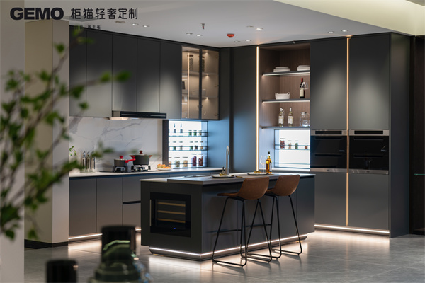玻璃櫥柜門可以增加空間的視覺通透感,讓廚房看起來更加寬敞明亮。它適合用于展示精美的餐具或收藏品。然而,玻璃需要定期清潔以保持透明,且易碎的性質(zhì)要求在使用過程中更加小心。