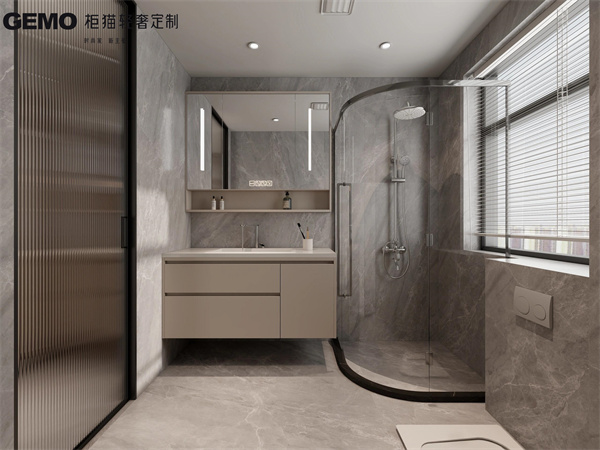 6. 定制浴室柜:浴室柜是衛(wèi)生間中的重要儲(chǔ)物家具。定制浴室柜可以根據(jù)衛(wèi)生間的大小、干濕分區(qū)以及家庭成員的洗漱習(xí)慣來(lái)設(shè)計(jì),確保儲(chǔ)物功能的完善和使用的便捷。